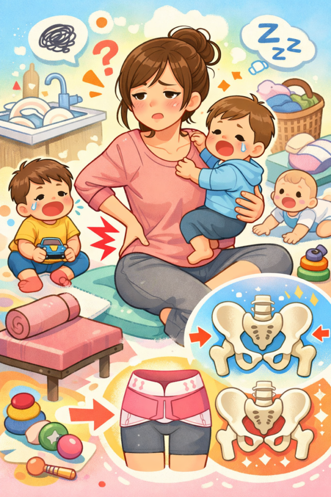 さらに、抱っこや授乳、家事、睡眠不足が続くことで、身体に負担が積み重なり、骨盤の歪みだけではなく全身の不調につながってしまいます。
